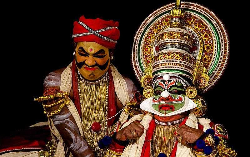 Non-Western performance traditions developed their own highly sophisticated design languages. In the vibrant Kathakali dance-drama of India, for instance, costume and makeup constitute a complex code that the audience learns to read . A Kathakali artist in full costume appears almost superhuman – face painted green or black or red depending on the character’s nature (noble hero, villainous demon, or divine being), wearing a towering headpiece and a billowing layered skirt . It can take artists hours to don these resplendent costumes and elaborate facial makeup, which together instantly signal a character’s identity and moral bearing . A green face with delicate rice-paste patterns (pachcha) signifies a virtuous hero or god, while a red beard or streaks indicate evil intent . Every color and ornament – down to the tassels and the concentric halo-like headgear – is codified, embodying an aesthetic of spectacle that heightens the epic, otherworldly tone of Kathakali performances. These visual codes in Kathakali are not arbitrary; they connect to ancient Hindu theory (the Guṇa qualities) mapping colors to personality traits . Much as a medieval European mystery play might dress the Virtues in white and Vice in red and black, Kathakali uses costume as a moral and narrative sign-system that complements its stylized choreography. Chinese Beijing Opera (Peking Opera) evolved a comparable system. Performers wear brilliantly embroidered costumes and often ornate headdresses indicating their role’s rank and attributes. In the absence of realistic sets (Peking Opera stages have remained essentially bare platforms with perhaps a table and chair to symbolize multiple objects ), costume carries extraordinary importance. Qing dynasty court robes, for example, are used to signify emperors and high officials – yellow silks with dragon motifs for the emperor, rich purple for ministers – whereas warriors wear armor-like vests and the clowns (chou) wear simple cotton jackets . The colors themselves form a code of status and virtue: red for loyal high-ranking men, blue for lower officials, white for the old or the young, black for commoners . Even sleeve length is meaningful: the famous “water sleeves” – long white silk extensions on the sleeves – are flicked in graceful arcs to express emotion. Beijing Opera’s spectacular facial makeup (the jing role’s painted masks with intricate color patterns) further externalizes character traits, much as in Kathakali. Across these global traditions, we see a common thread: when physical scenery is limited, costume and makeup take on an outsized dramaturgical role. They become moving scenery worn on the body – a kind of symbolic set design that travels with the actor.