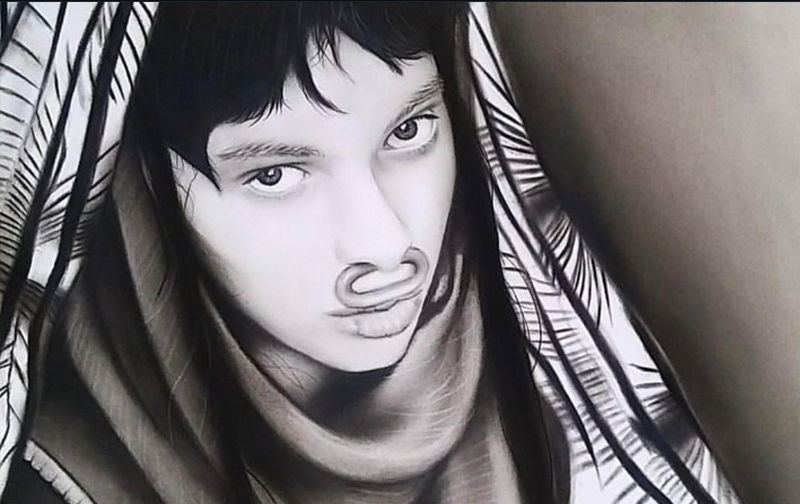 My sitters are often young people balancing between tradition and modernity; they wear contemporary clothing but adopt poses reminiscent of classical portraits.  In Western art history, the portrait has been a site where power and identity converge.  Portraits of rulers assert authority; portraits of bourgeois families display wealth.  My portraits are not commissions; they are collaborations with friends and acquaintances. The blue plastic nose ring seen in my photograph is not a piece of jewellery but a training aid used by fake trend in Iran.  It becomes an absurd yet poignant detail.  John Berger wrote that the photographer chooses what is worth recording.  I chose to record that moment because it revealed an intersection of beauty and strangeness.  When I draw the nose ring in graphite, it becomes a tonal form rather than a colourful object.  Its presence raises questions about identity and play.  Is this a costume?  Is it an act of defiance?  The viewer cannot know, but the ambiguity invites contemplation. As my practice has developed, I have become increasingly interested in how the photograph’s dreamlike quality intersects with reality.  The philosopher Gaston Bachelard wrote about the poetic power of the dream and the reverie.  Dreams, he argued, are not just escapes but creative forces that reshape reality.  In Persian poetry, dreams are often messages from the divine or glimpses of a truer reality.  My photographs sometimes capture moments that feel as though they belong to another world – not because I stage them, but because the world itself offers surreal juxtapositions. A girl wearing a bright scarf stands in front of a decaying wall; light falls on her face in a way that seems too perfect to be real.  When I draw these scenes, I try to preserve their strangeness without embellishing them.  The graphite powder allows me to create smooth transitions from light to dark that evoke a sense of being suspended between waking and dreaming.