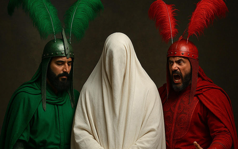 کارکرد ایدئولوژیک این پوشش کاملاً آشکار است: به تصویر کشیدن جهان اخلاقی در اسلام شیعه، جایی که نیکی و بدی به روشنی سبز و سرخ از هم متمایز میشوند.